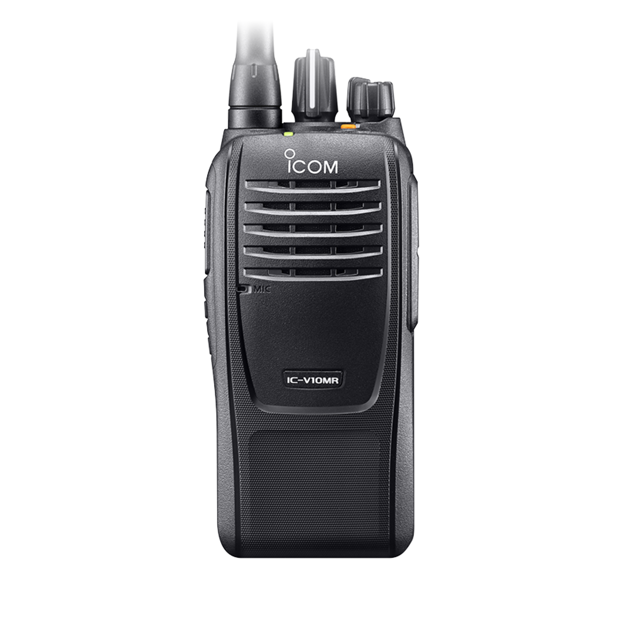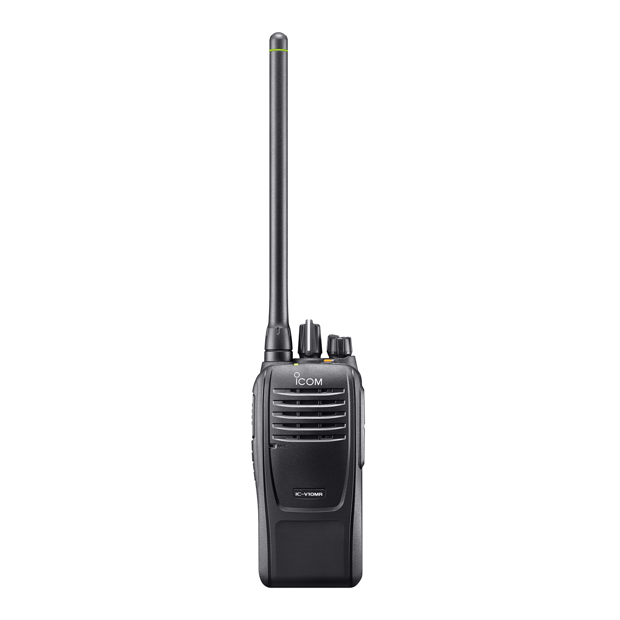 The Icom V10MR is a tough and rugged radio that exceeds MIL-STD specifications, and its IP67 waterproof rating allows it to be used under hard rain and washed with clean water. It delivers a powerful 1500 mW audio with exceptional listening clarity and includes a built-in motion sensor that can detect its position, state of motion and non-motion, and can send an emergency signal.