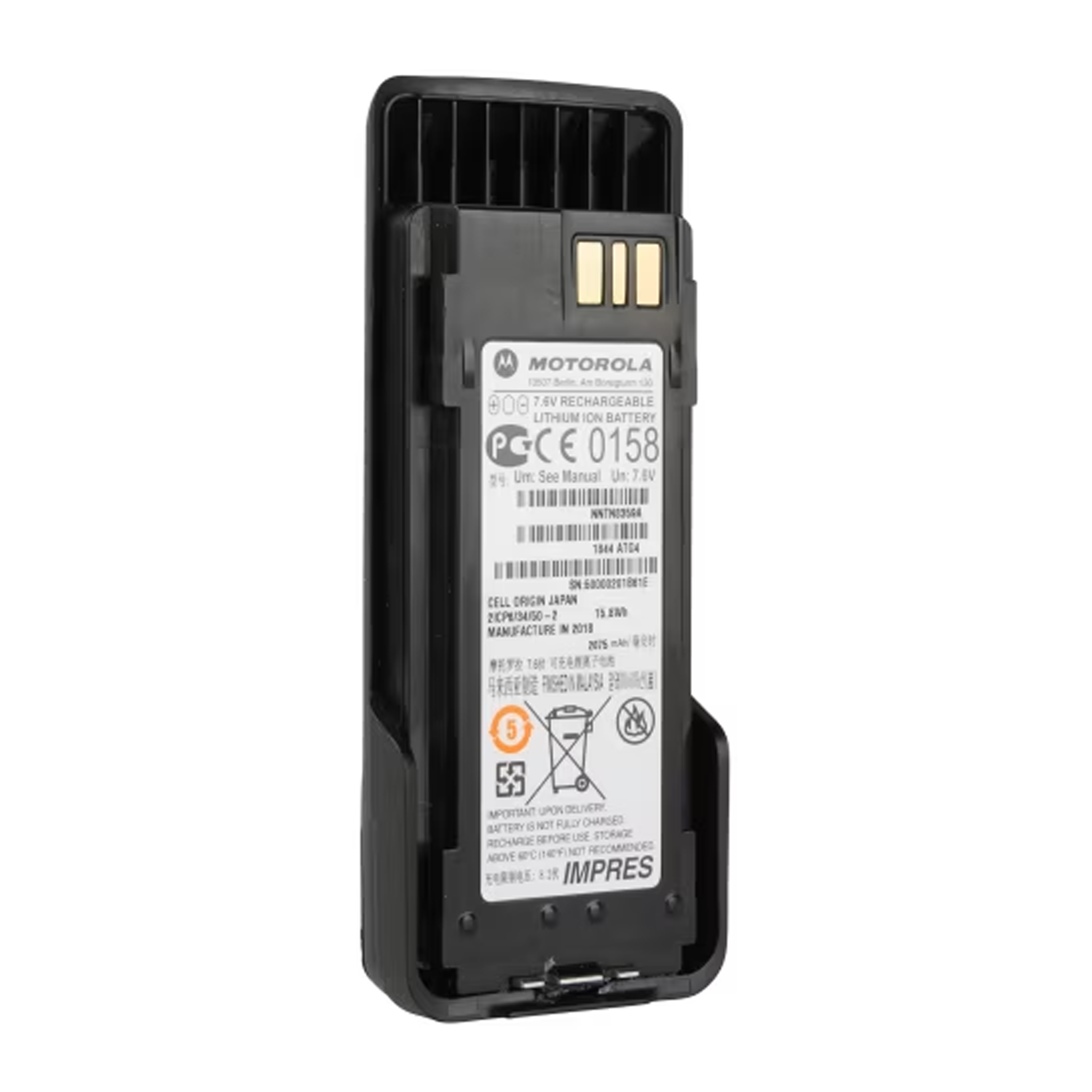 Featuring Motorola's proprietary IMPRES™ technology, the NNTN8359C communicates with its charger to automate battery maintenance, ensuring a longer lifecycle and optimized performance. With an IP64 rating, it is built to withstand dust and moisture while providing reliable power for demanding shifts in potentially explosive atmospheres.